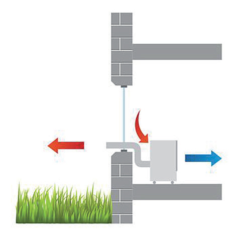 L'air aspiré est filtré et déshumidifié avant d'être retourné dans la pièce. Grâce à un tuyau d'évacuation flexible, la chaleur est acheminée vers l'extérieur. Un simple entrebâillement de fenêtre ou de porte suffit. L'humidité est acheminée sous forme de vapeur de compensation vers l'extérieur par le tuyau d'évacuation.